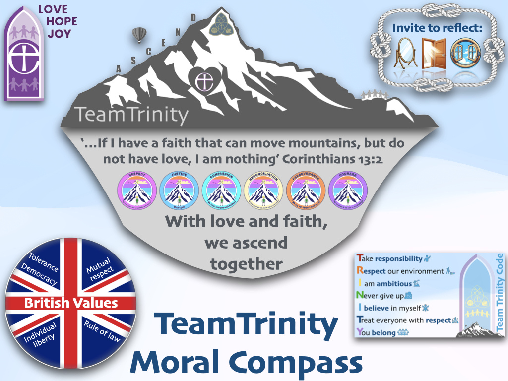 The word 'ascend' is used throughout our school as an aspirational focus of forever reaching the highest of heights. For every child and adult in our school to reach the top of their own mountain, they need to continually ascend in everything they do. 'Ascend' represents the idea that no matter what, we can always move forward - as long as we have faith and love with us.